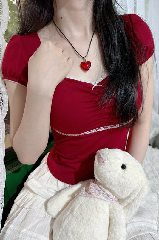 Sold outCeleste Blue Ribbon Dantel Top