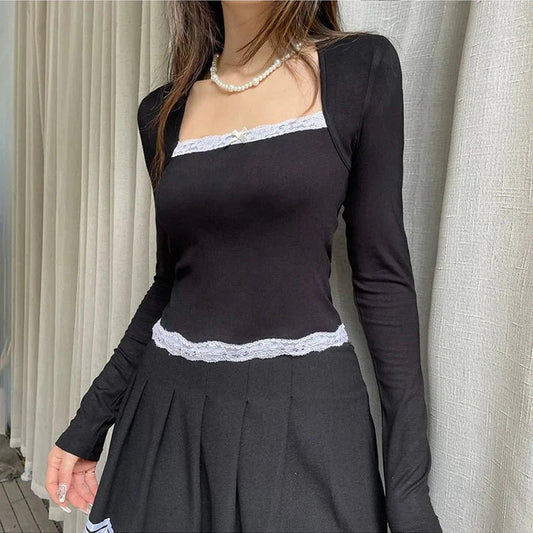 Sold outY2k Square Dantel Blouse
