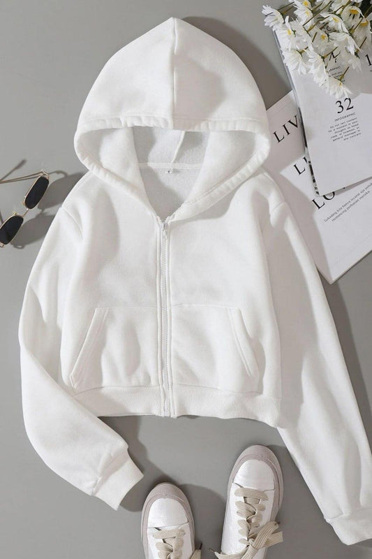 Sold outBasic Crop Zip Hoodie - White